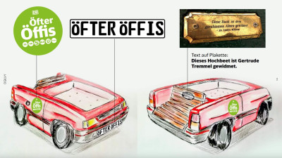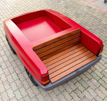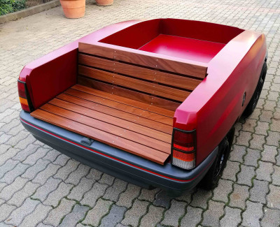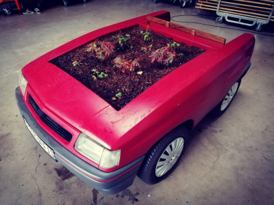 In 2023 we took part in Deutsche Bahn's "Öfter Öffi" campaign, where we manufactured the unique prize of the campaign, a piece of furniture made from a Opel car. The winner offered his used, old car and we made a unique flower bed-bench garden furniture out of it. The furniture was completed in record time, within 1 month, in the usual high quality. Check out some photos and a video of the manufacturing process..